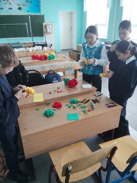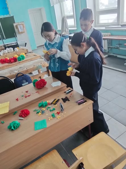 Шара барысында оқушылар өз қолдарымен түрлі әдемі бұйымдар жасап, аналарына арналған ерекше сыйлықтар дайындады. Олар түрлі түсті қағаздардан ашық хаттар, гүлдер, қолөнер бұйымдарын жасап, әр жұмысқа жүрек жылуын қосты. Әрбір бала анасына деген алғысын, махаббатын шығармашылық жұмыстары арқылы жеткізуге тырысты.