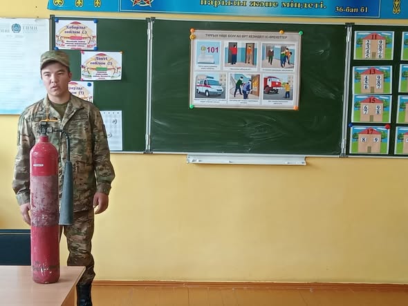 Дүниежүзілік азаматтық қорғаныс күніне өрт сөндіруші құтқарушы кіші сержант Даиров Жомарт Ерболатұлы оқушылармен көктемгі қауіпсіздік ережелері туралы әңгіме сағатын өткізді.