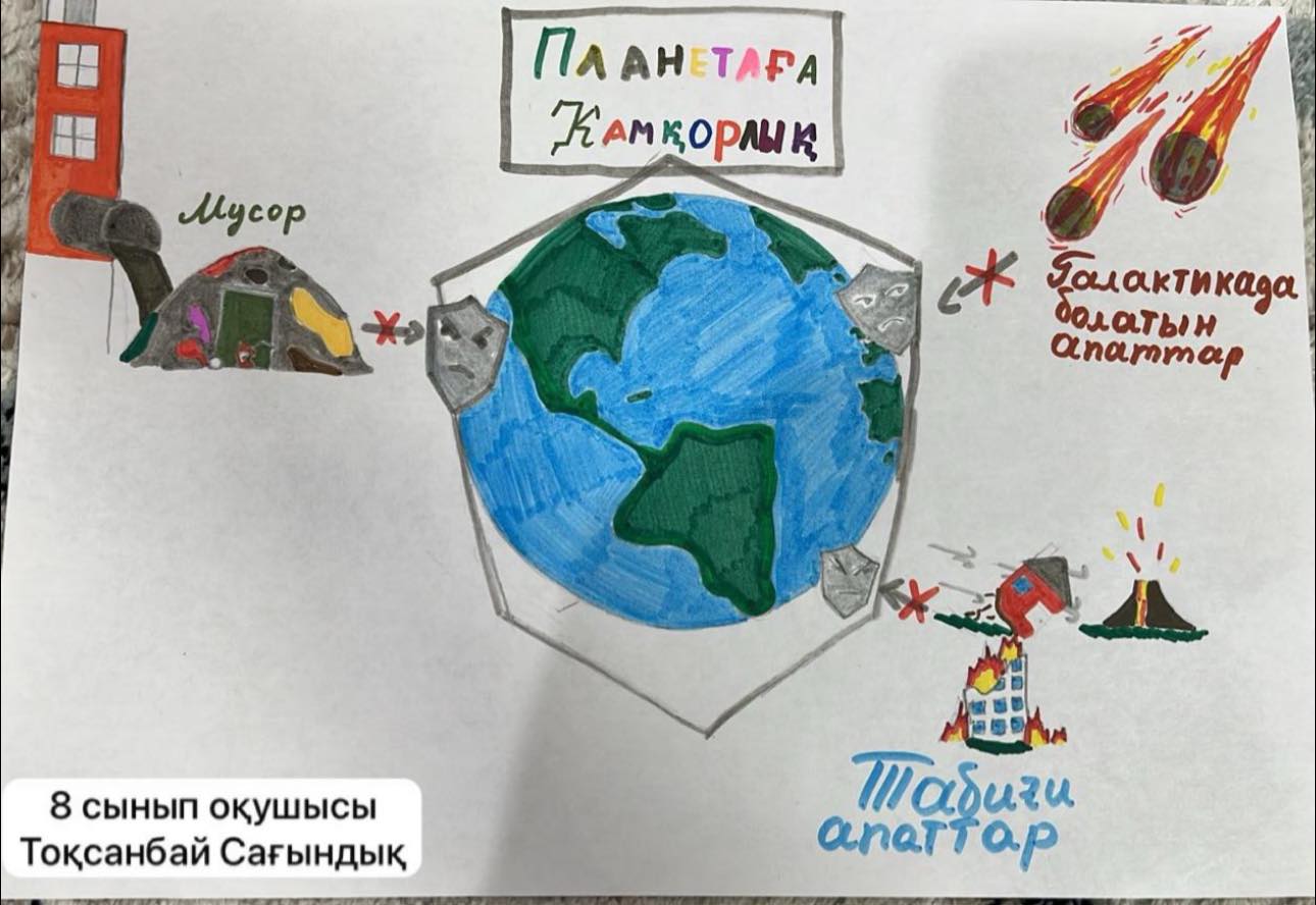 Мектебімізде экологиялық мәдениетті қалыптастыру және табиғатты қорғауға үн қосу мақсатында «Жер сағаты» акциясына арналған іс-шара өткізілді. Шара барысында оқушылар мен мұғалімдер белгіленген уақытта жарықты сөндіріп, энергияны үнемдеудің маңыздылығы туралы ой бөлісті. Іс-шара аясында танымдық әңгімелер, экологиялық тақырыптағы викториналар ұйымдастырылып, оқушыларға қоршаған ортаны қорғау, табиғи ресурстарды тиімді пайдалану жөнінде кеңінен түсіндіру жұмыстары жүргізілді. Сонымен қатар, оқушылар өз ойларын постерлер мен суреттер арқылы жеткізіп, табиғатқа деген жанашырлықтарын көрсетті.