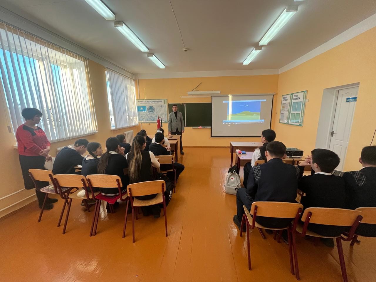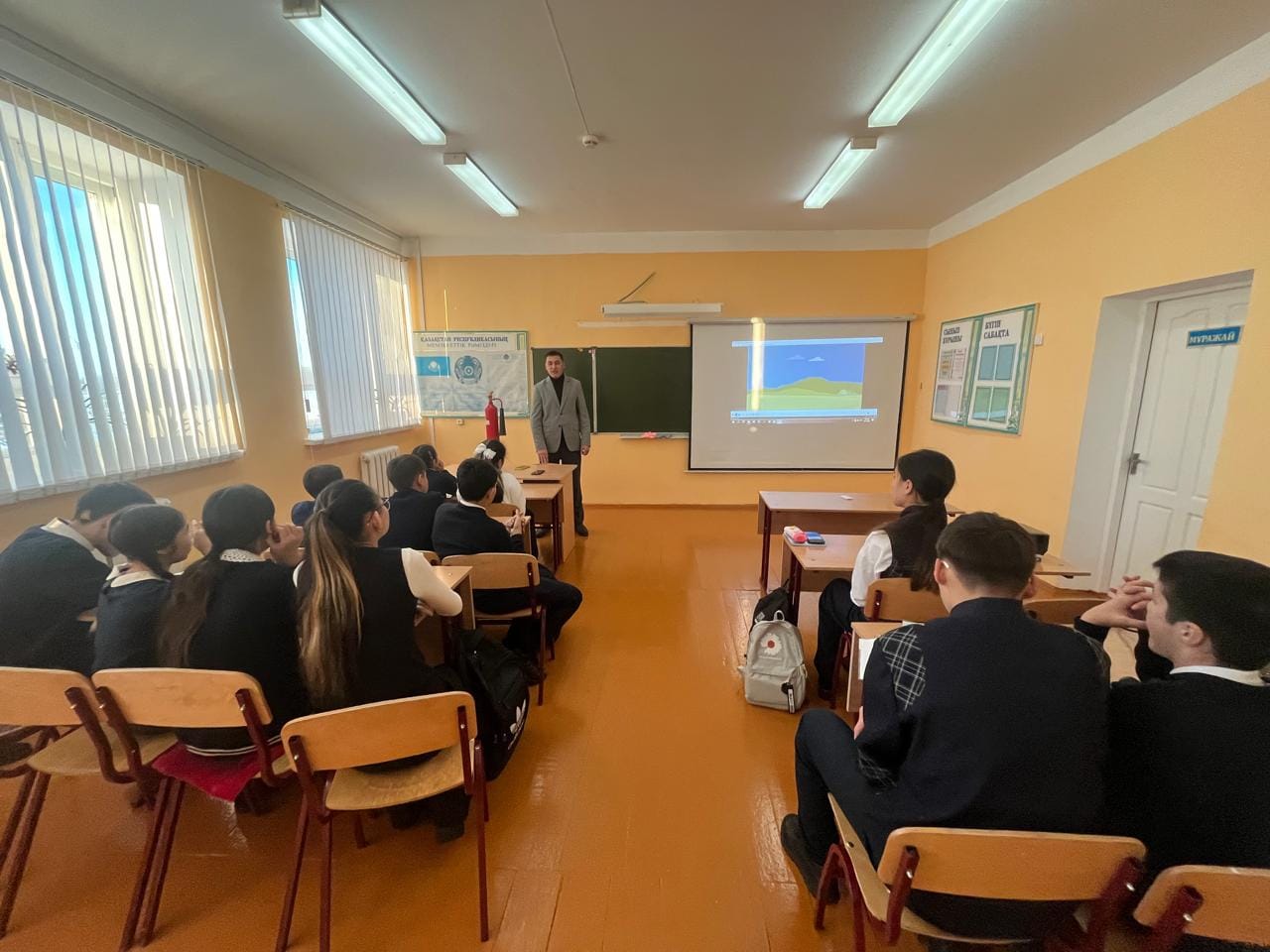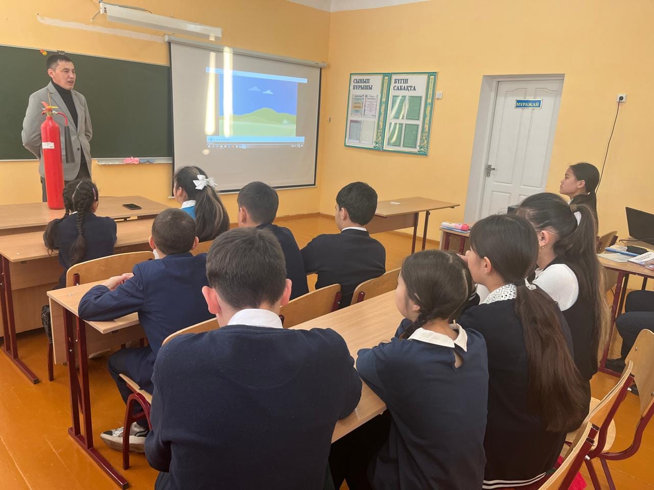 Бүгін Мәдениет орта мектебінде 1-9 сыныптар оқушыларына қауіпсіздік сабағы өткізілді. Сабақ барысында «Өрт қауіпсіздігінің жалпы ережелері», “Мектегі өрт кезіндегі іс-әрекеттер алгоритмі”, "Абайла, мұз" және «Баршаның назарына сиренасы» тақырыптарында түсіндіру сабақтары өткізілді. Сабақ балаларға сұрақ-жауап түрінде миға шабуыл жасау әдісімен өткізілді.