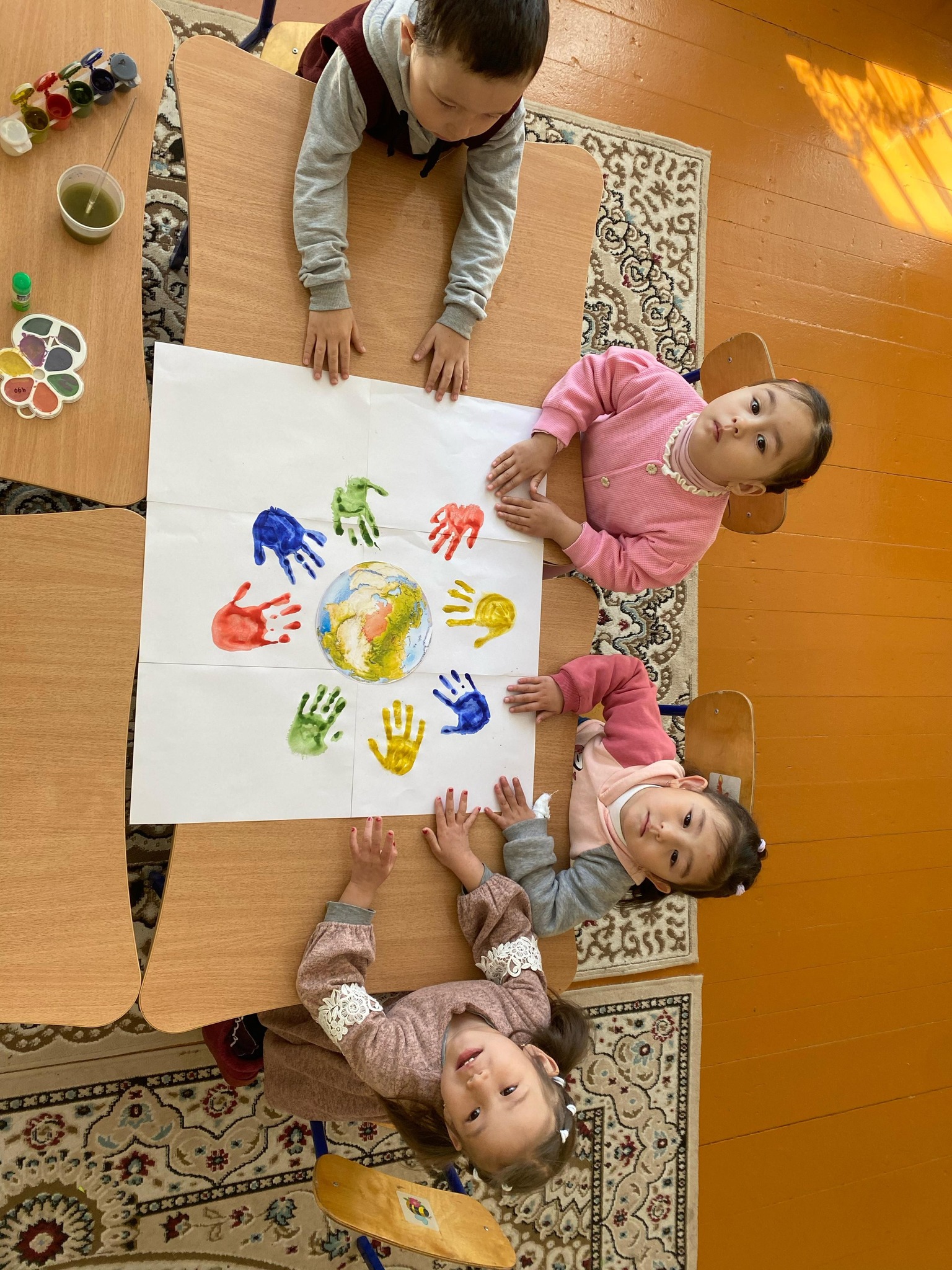 Түрлі ұлттардың ұлттық киімдері мен билері таныстырылып, достық пен татулық жайлы әңгіме айтылды. Балалар өлең оқып, сурет салды, өз достарына жылы тілектерін арнады.