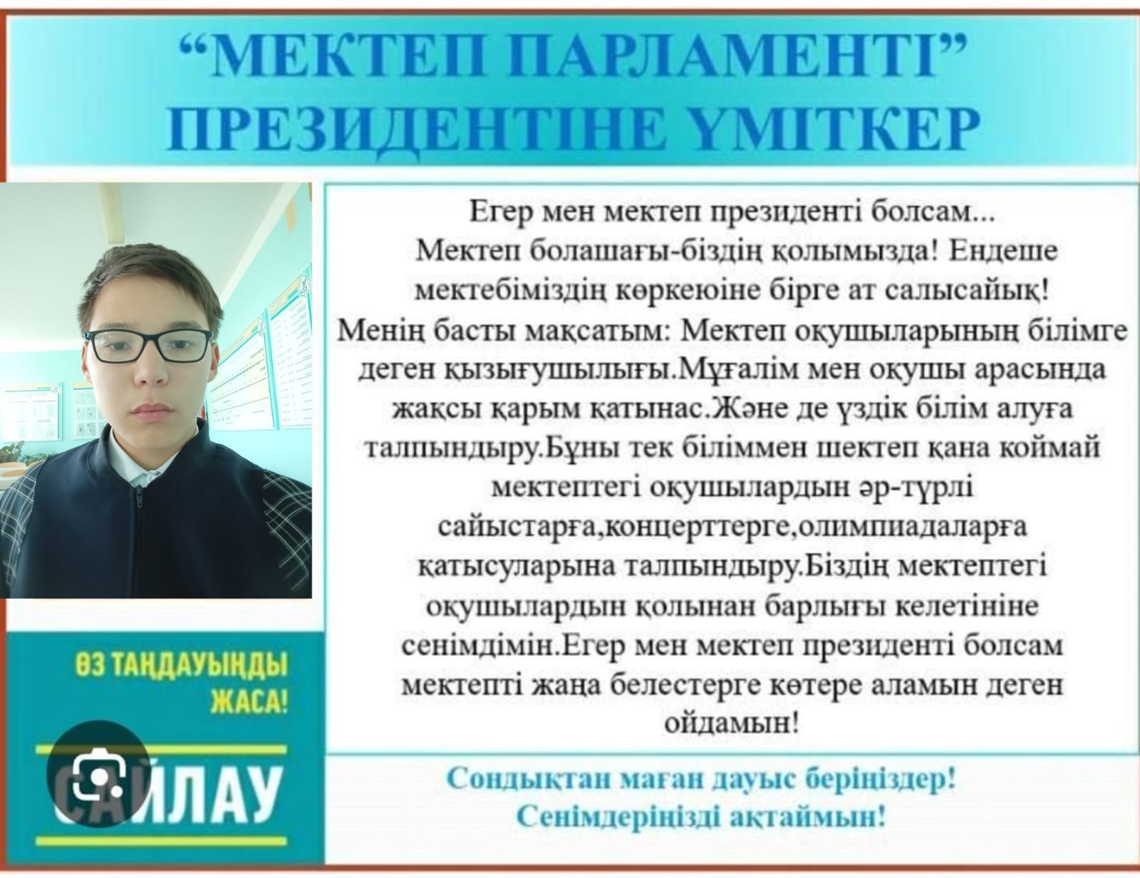 2024 жылдың 19 қазан күні "Мектеп Парламенті Өзін-өзі басқару" ұйымының президент сайлауы өтеді.