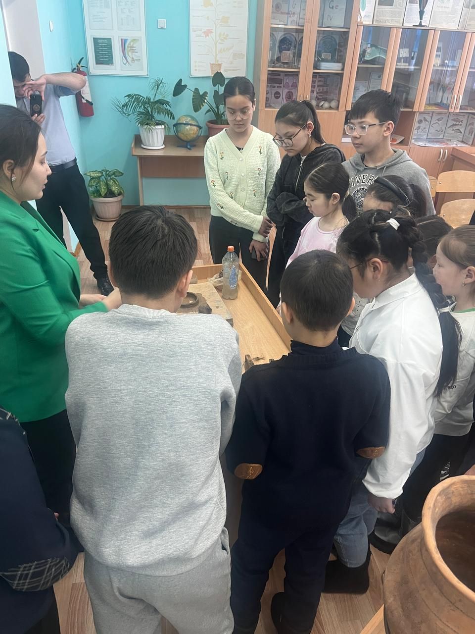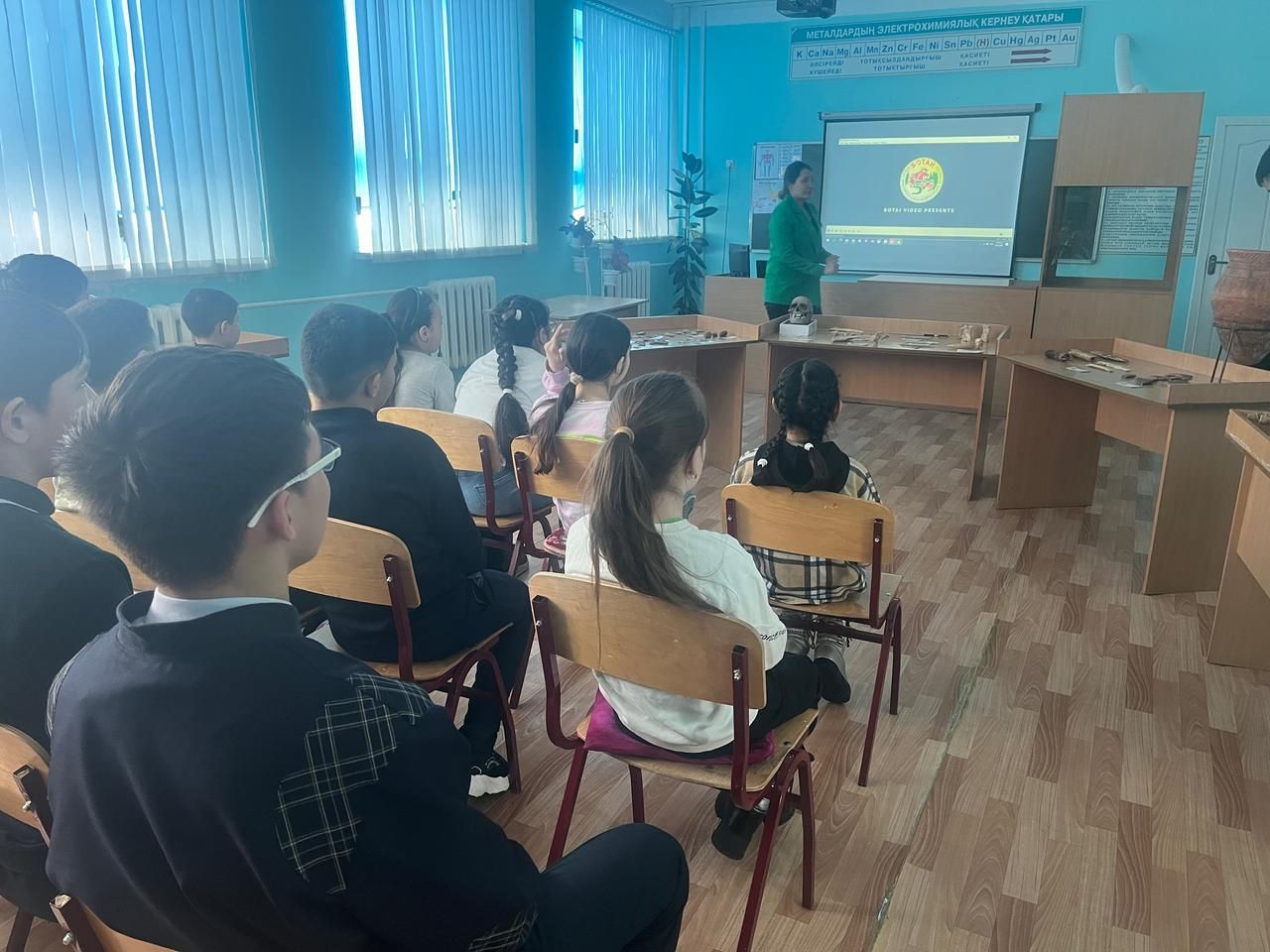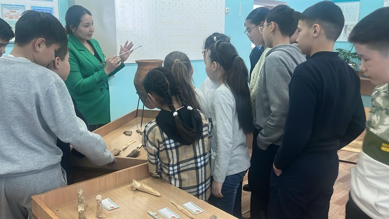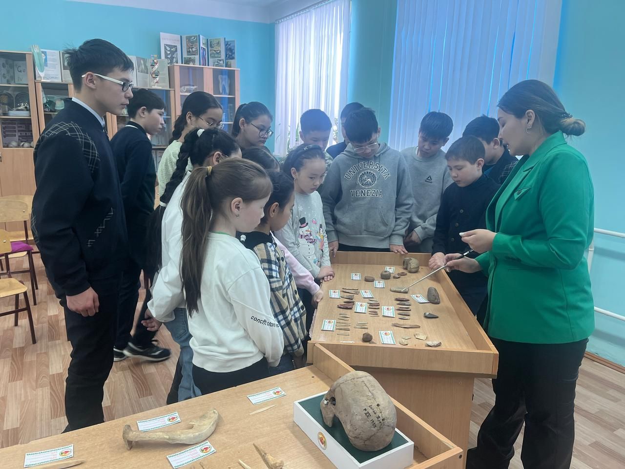 Музей-қорығының қызметкері Айгерим Жеңісқызы оқушыларға ескерткіштер, археологиялық қазба туралы деректер айтып, көрме ұйымдастырды.
