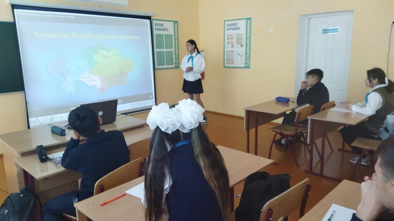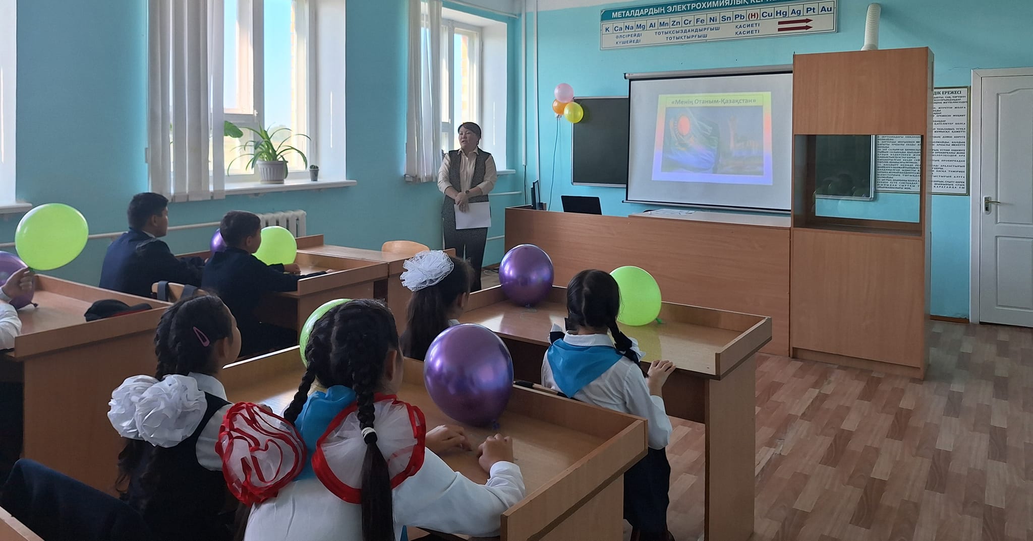 2-нші қыркүйек күні мектебімізде 5-9 сынып оқушыларында "Менің Отаным-Қазақстан" тақырыбында сынып сағаты өтті.