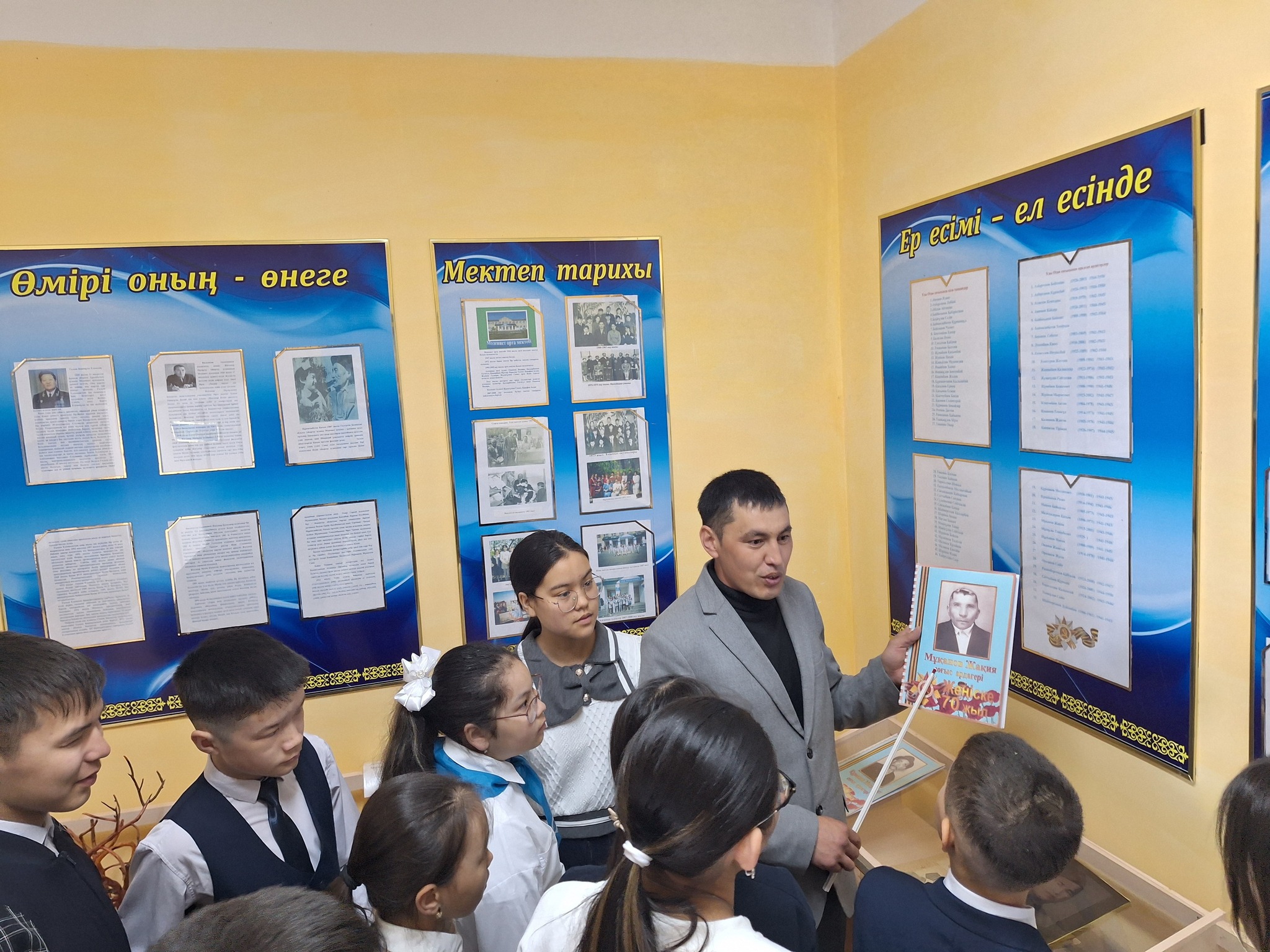 Әр отбасыннан майданға аттанған және тылда еңбек еткен ата-әжелері бар. Мектебіміздің мұражайында сол батыр адамдар туралы көп деректер жиналған, 1-9 сынып оқушыларына солар туралы біраз мәлімет берілді.