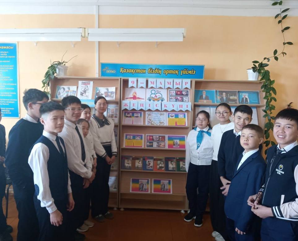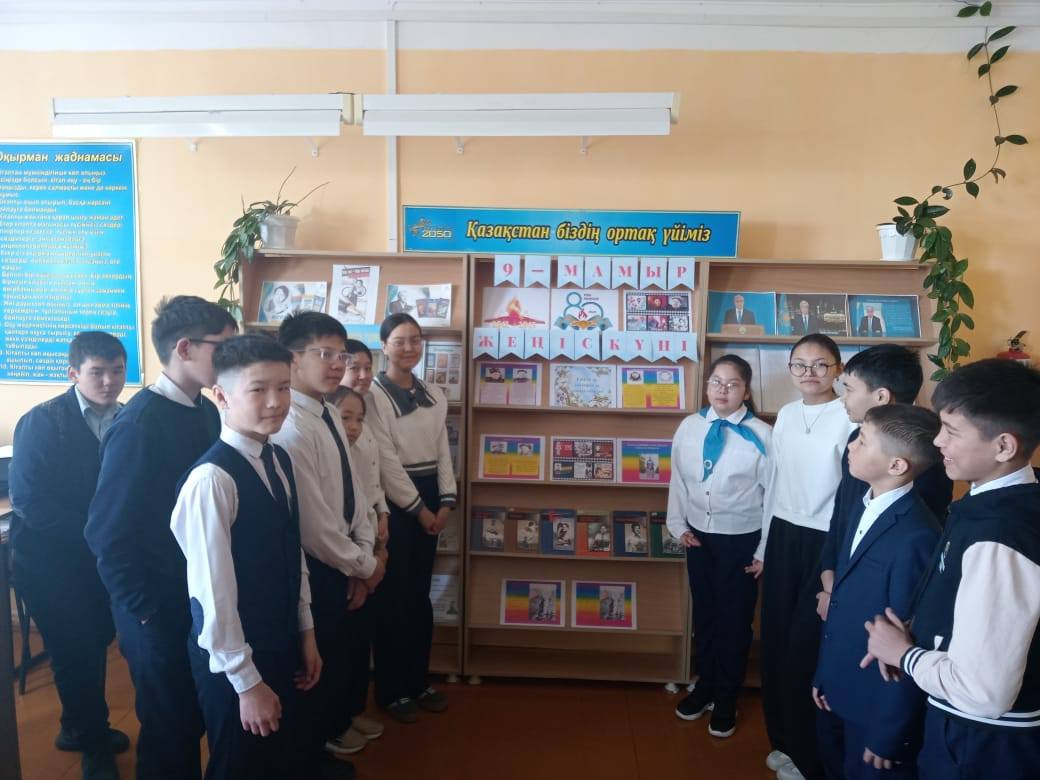 9-мамыр Жеңіс күні мерекесіне орай мектебіміздің кітапханасында "Батырлар дауысы-кітаптарда" тақырыбында көрме ұйымдастырылды.