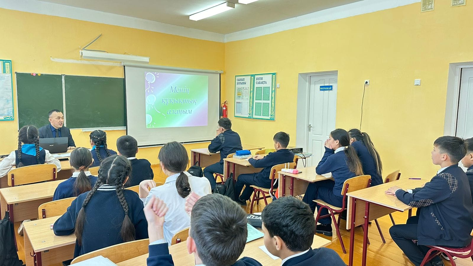 Мәдениет орта мектебінде қарашаның 13-і күні "Бүкіл әлем мен үшін" Дүниежүзілік бала күніне арналған декаданың аясында мектептің тарих және құқық негіздері пәнінің мұғалімі Елемесов Серік Төлегенұлы "Менің құқықтық алаңым" атты іс-шара өткізді. Балаларға құқық әлемінің қыр-сырынан мағлұмат берді.