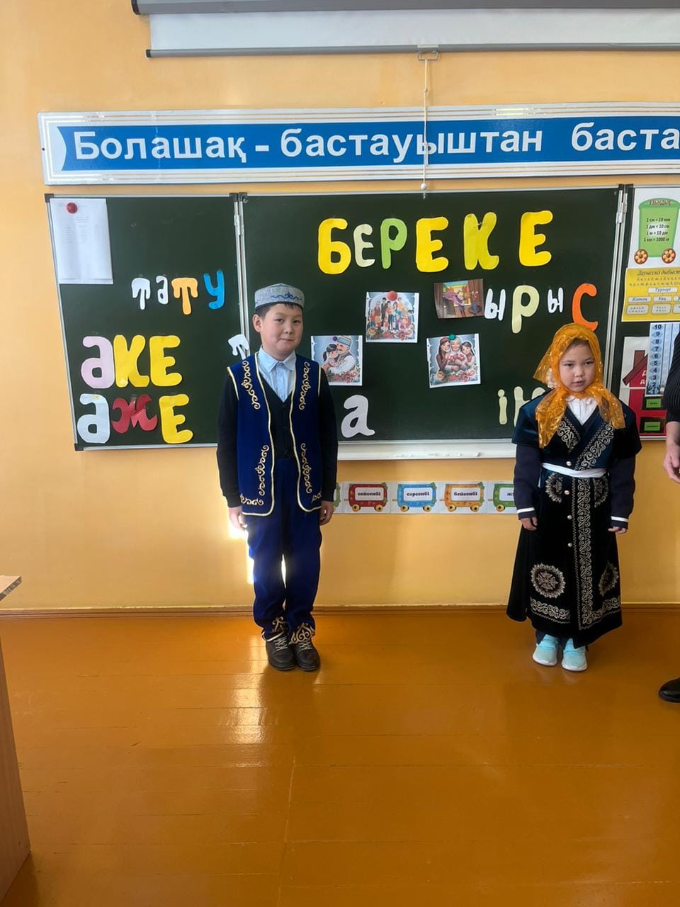 1-қазан Халықаралық қарттар күні мерекесіне орай 1-4 сынып оқушыларымен "Қарттарым-асыл қазынам" атты тәрбие сағаты өтті.Мақсаты: оқушылардың бойына халқымыздың қадір-қасиетін сіңіру,үлкенді сыйлай білуге, өз ата-бабасын ұмытпай есте сақтауға және аталы сөзден ғибрат алуға тәрбиелеу. Тәрбие сағат барысында оқушылар қарттарды қадірлеу жайында көрініс көрсетті.Қарт кісіні құт-береке деп танысақ-ол ұрпақ көрегендігі. Ұрпағы құрметтеген ата-ана әр кезде де бақытты.