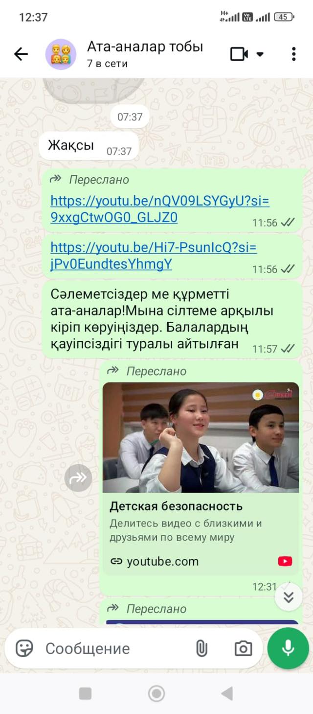 Қауіпсіздік бойынша ата-аналарға және оқушыларға түсіндірме жұмыстары жүргізілді. Іс-шараның мақсаты – оқушылардың өмір қауіпсіздігін сақтау, төтенше жағдайлардың алдын алу және қауіпсіз мінез-құлық дағдыларын қалыптастыру. Іс-шара барысында жол қозғалысы ережелері, өрт қауіпсіздігі, тұрмыста және қоғамдық орындарда өзін дұрыс ұстау, сондай-ақ интернеттегі қауіпсіздік мәселелері түсіндірілді.