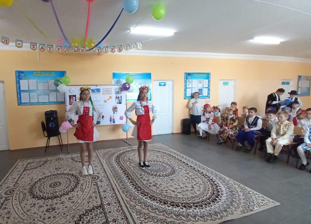 5 қыркүйек Қазақстан халқы тілдері күніне орай мектебімізде «Тіл - достықтың алтын көпірі» атты үлкен іс шара өтті. Іс шара мақсаты: Қазақстан жерінде шоғырланған ұлттар мен ұлыстар туралы мағлұмат бере отырып, ұлттардың мәдениетінен көрініс беру. Яғни, ұлттық киімдерін көрсетіп, әр ұлттың өз тілінде өлең шумақтары оқылып, ән-билері орындалды. Оқушылар үлкен жауапкершілікпен қарап, әр ұлтқа деген құрметі арта түсті. Іс шара кең көлемді түрде өте мазмұнды да әсерлі өтті.