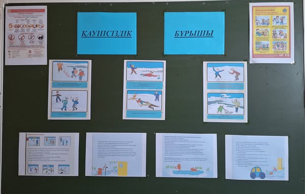"Балалар қауіпсіздігі" айлығы аясында мектебімізде "Қауіпсіздік бұрышы" ұйымдастырылды. "Жолда жүру ережесі" , "Қыс мезгіліндегі қауіпсіздіқ" және "Өрт кезіндегі қауіпсіздік " бойынша жадынамалар ілінді.
