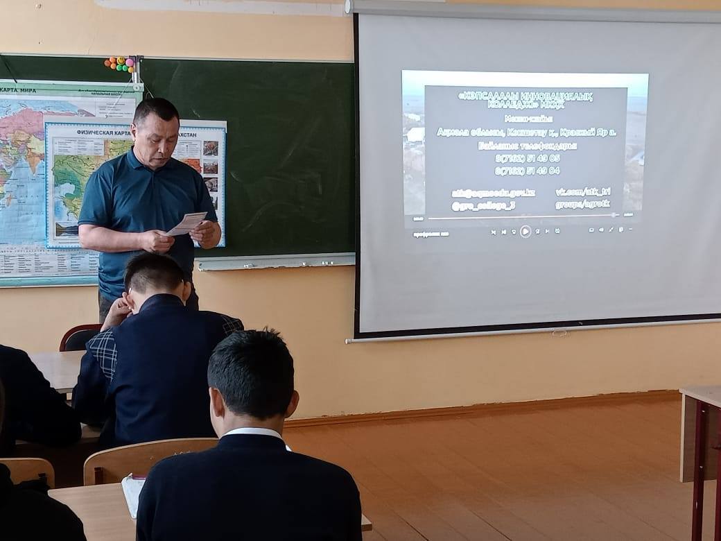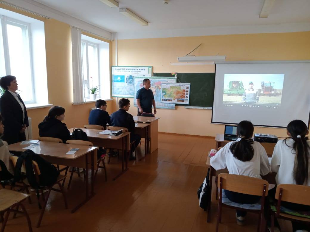 #Біртұтас_тәрбие 12 мамыр күні кәсіптік бағдар беру жұмысы аясында мектебімізге Красный Яр "Көпсалалы инновациялық колледжінің" өкілдері келді.