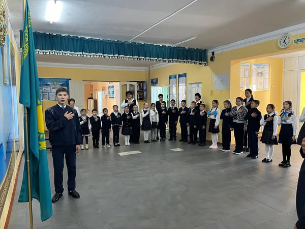 Әр дүйсенбі күні мектебімізде әнұран орындалады. Мектебіміздің барлық оқушылары мен ұстаздары белсене қатысады.