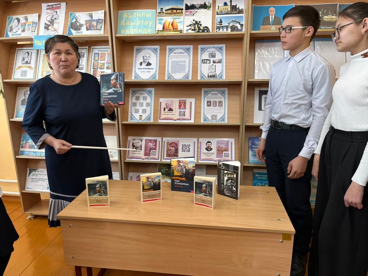 Ілияс Есенберлиннің 110 жылдығына орай мектебіміздің кітапханасында көрме ұйымдастырылды. Қазақ тілі мен әдебиет пәні мұғалімі Рахимова Жазира Талғатқызы 8-9 сынып оқушыларына Ілияс Есенберлиннің өмірі мен шығармашылығы туралы айтты.