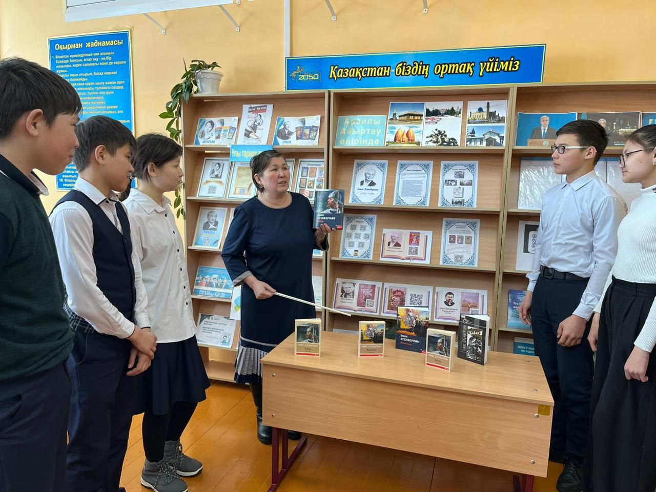 Ілияс Есенберлиннің 110 жылдығына орай мектебіміздің кітапханасында көрме ұйымдастырылды.