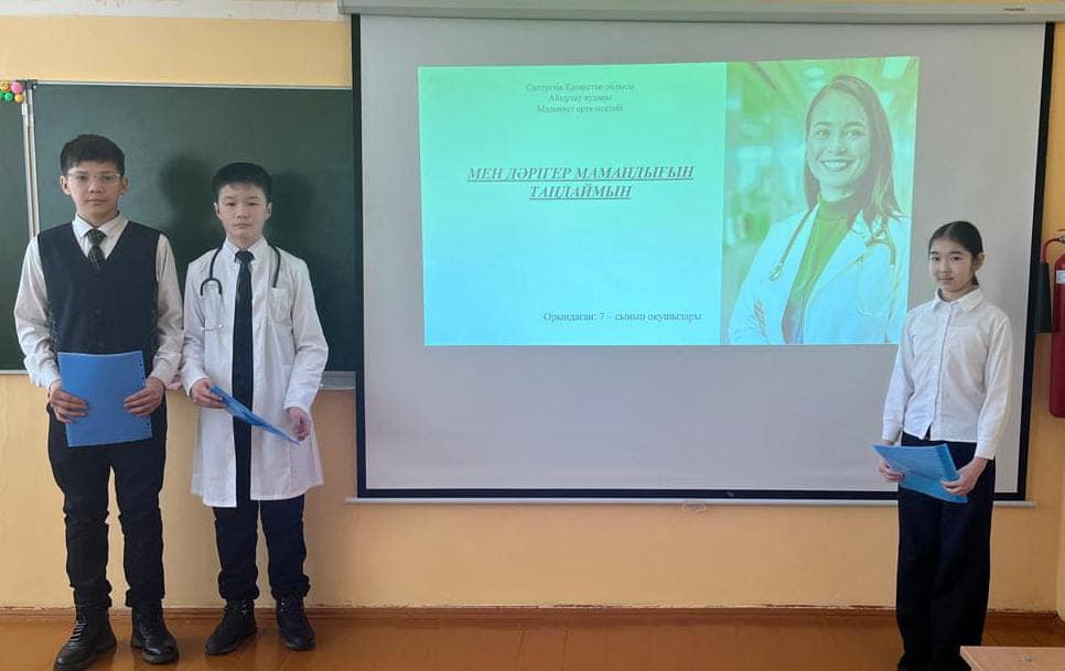 “Кәсіби мамандық апталығы” жоспары бойынша 18 наурыз күні 7-9сынып оқушыларымен "Кәсіптер әлемін ашамыз" атты тақырыпта презентация, бизнес-жоба, бейнеролик байқауы өтті.