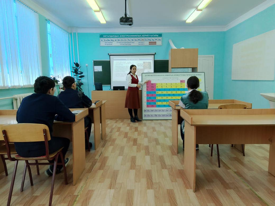 “Жаратылыстану әлеміне саяхат” атты апталықтың жоспары бойынша 06 наурыз күні 9-сынып оқушыларымен Химия пәнінің мұғалімі Асима Ерденовна “Ауыр металдармен қоршаған ортаның ластануы” тақырыбында ашық сабақ өткізді.