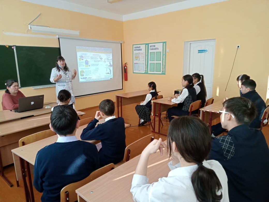 Мектебімізде Арықбалық орталық аурухана бөлімінен келген қызметкерлер түсіндіру жұмыстарын жүргізді