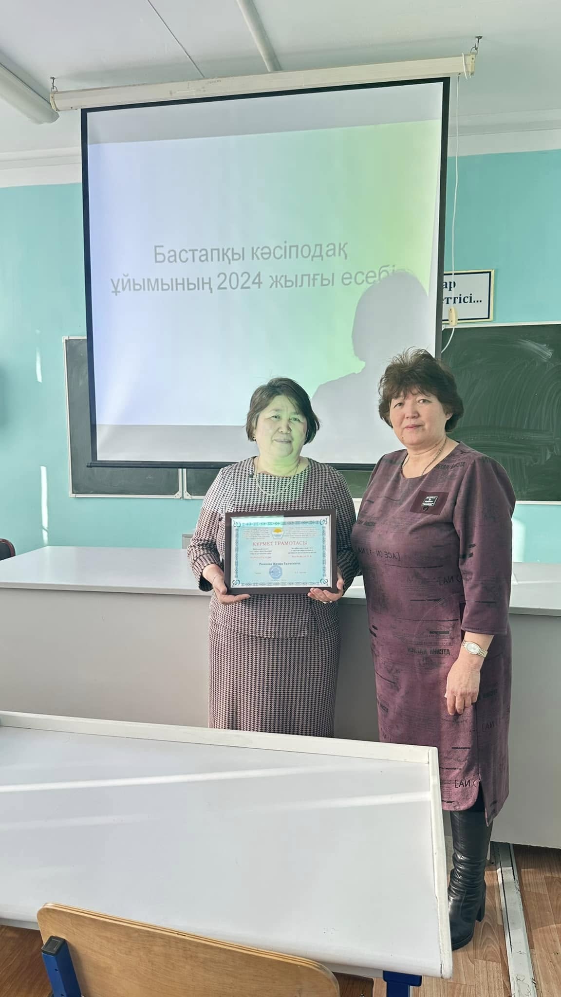 “Қазақстандық оқу-ағарту, ғылыми және жоғары білім қызметкерлерінің салалық кәсіптік одағының Солтүстік Қазақстан облыстық ұйымы” атынан мектебіміздің әлеуметтік педагогі, қазақ тілі мен әдебиет пәнінің мұғалімі Рахимова Жазира Талғатқызы Құрмет грамотасымен марапатталды.