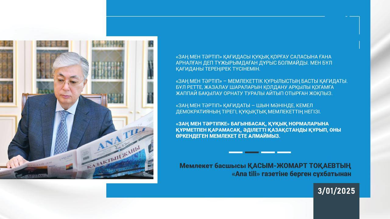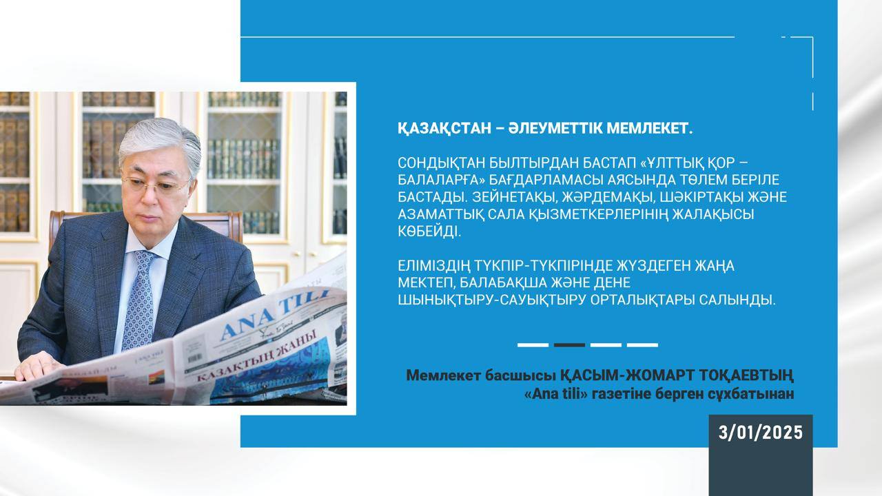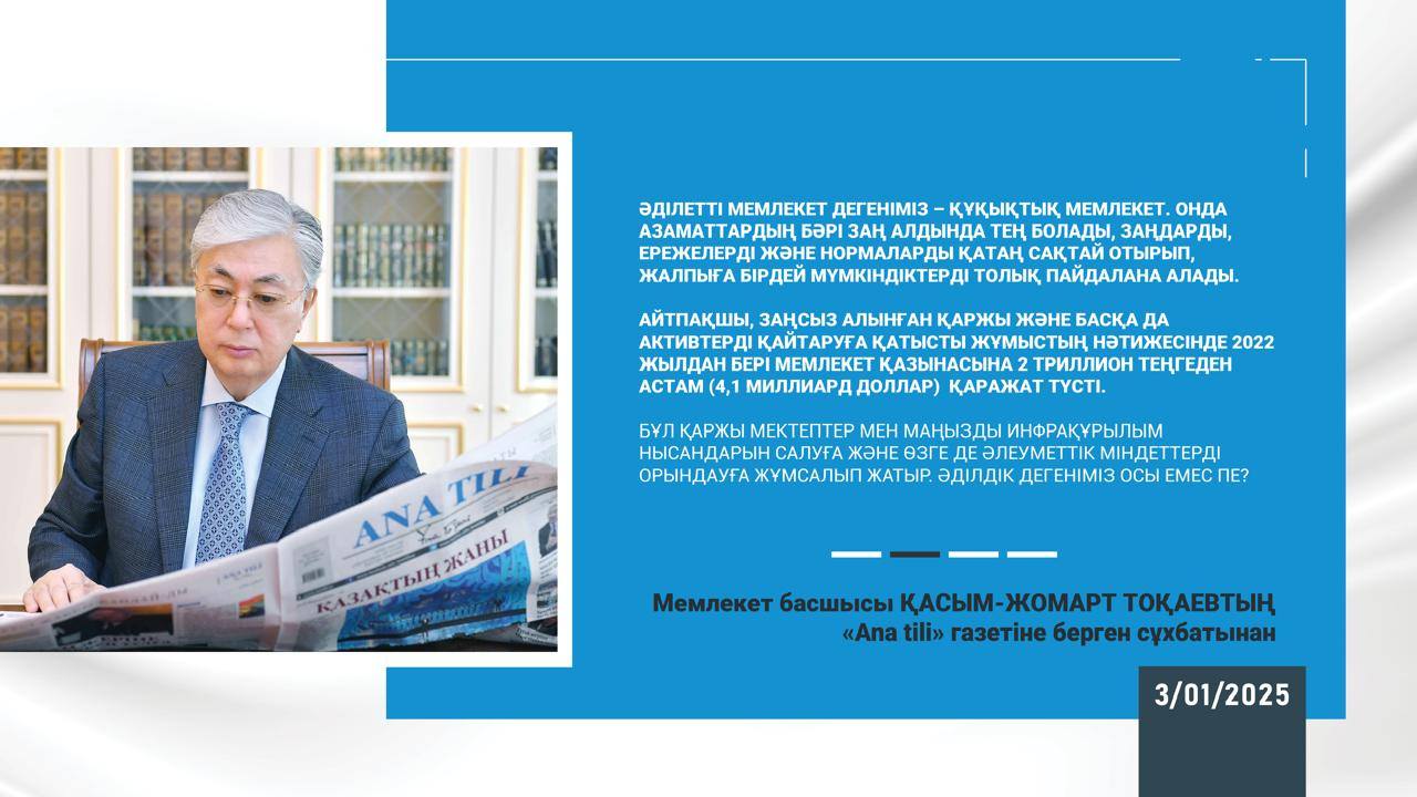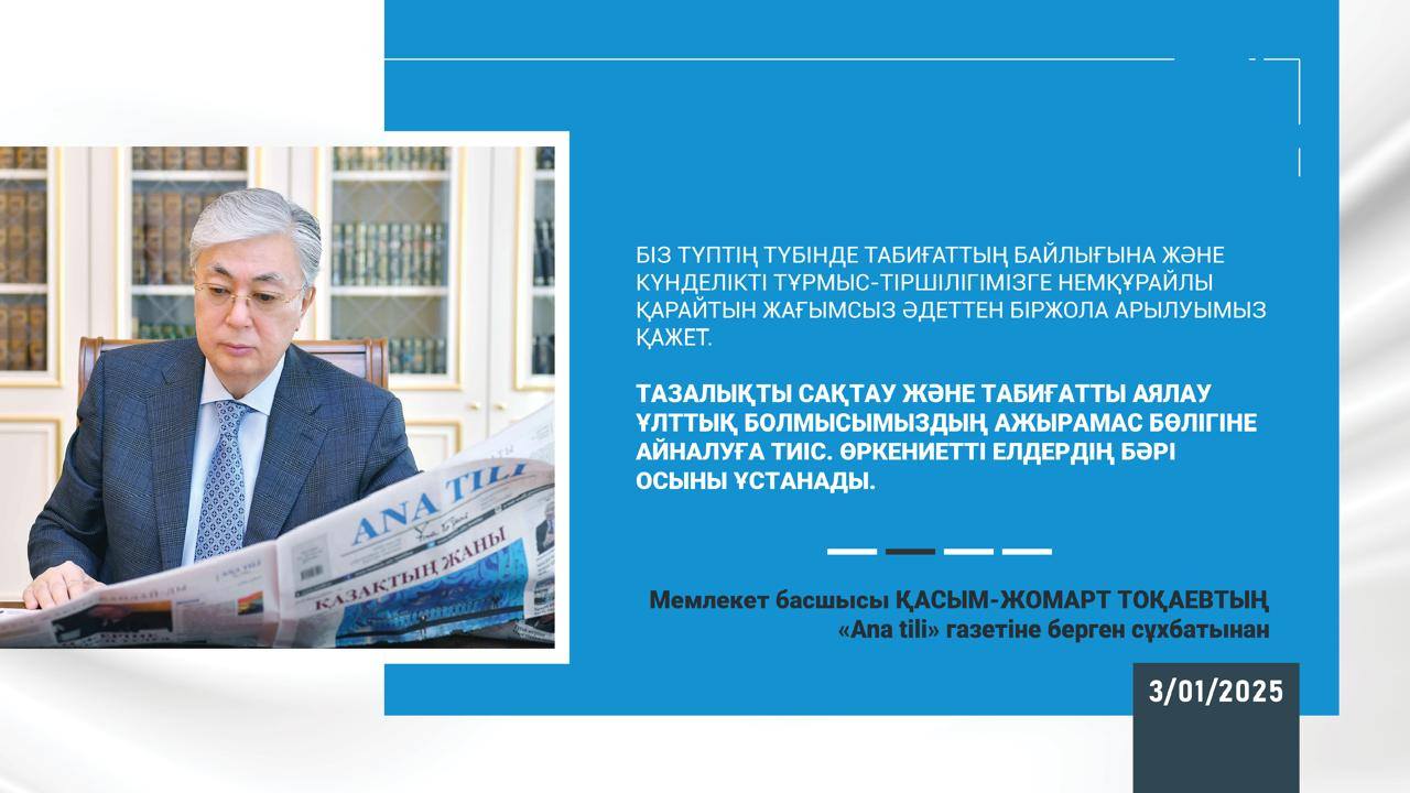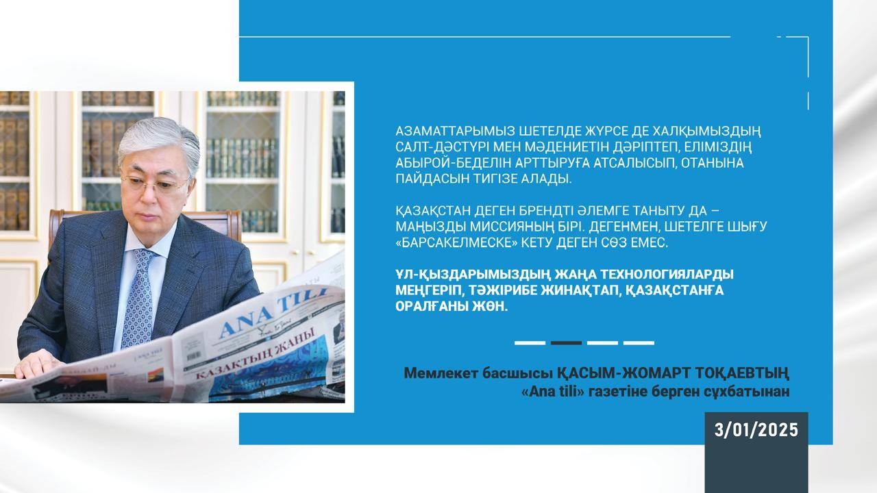 Мемлекет басшысы Қасым-Жомарт Тоқаевтың "Ana tili" газетіне берген сұхбатынан
