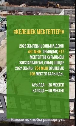 🇰🇿 Мемлекет басшысының бастамасымен Қазақстанда бұрын-соңды болмаған, теңдессіз жаңа үлгідегі мектептер салынуда.