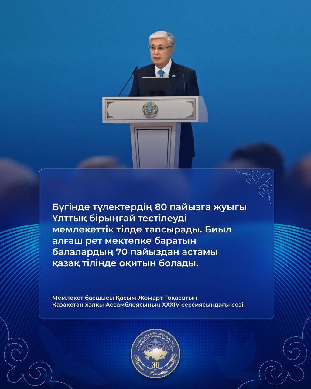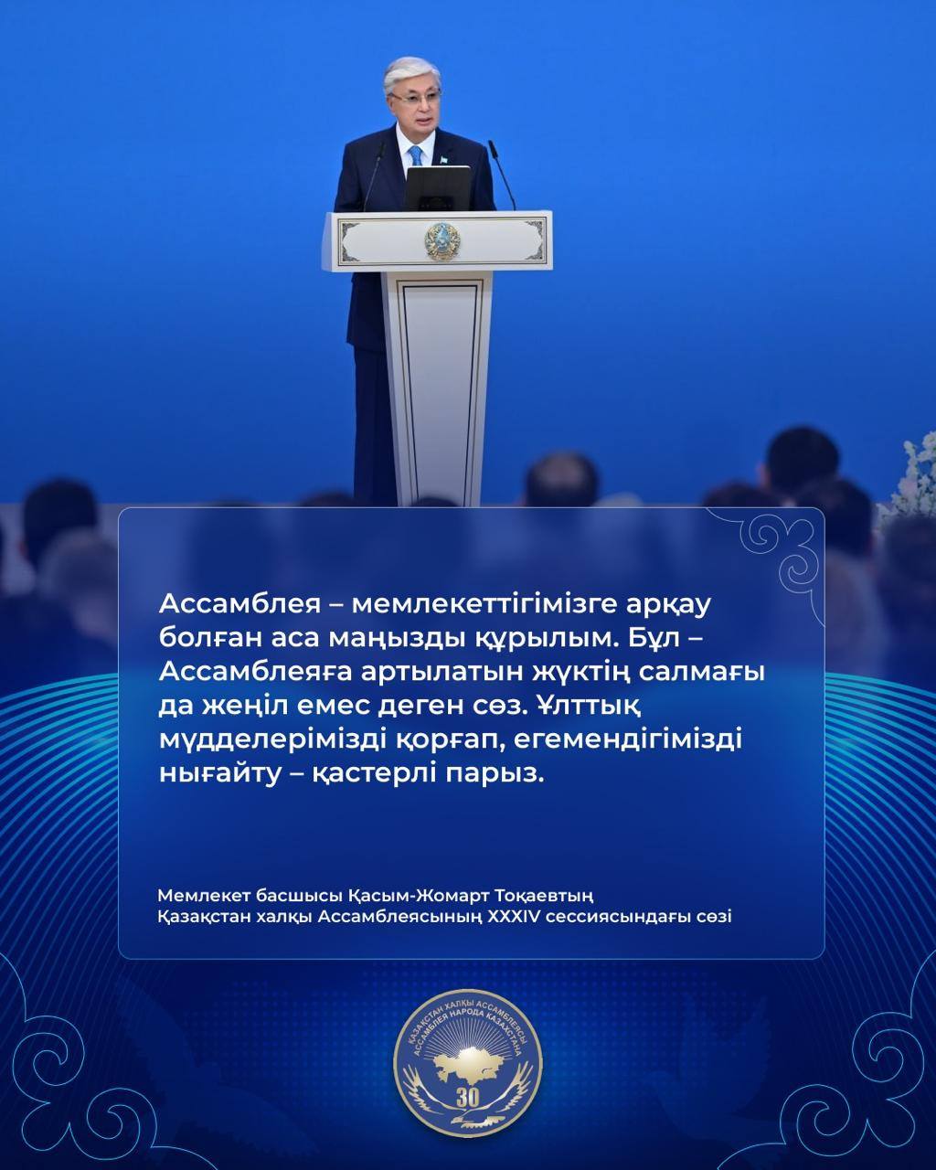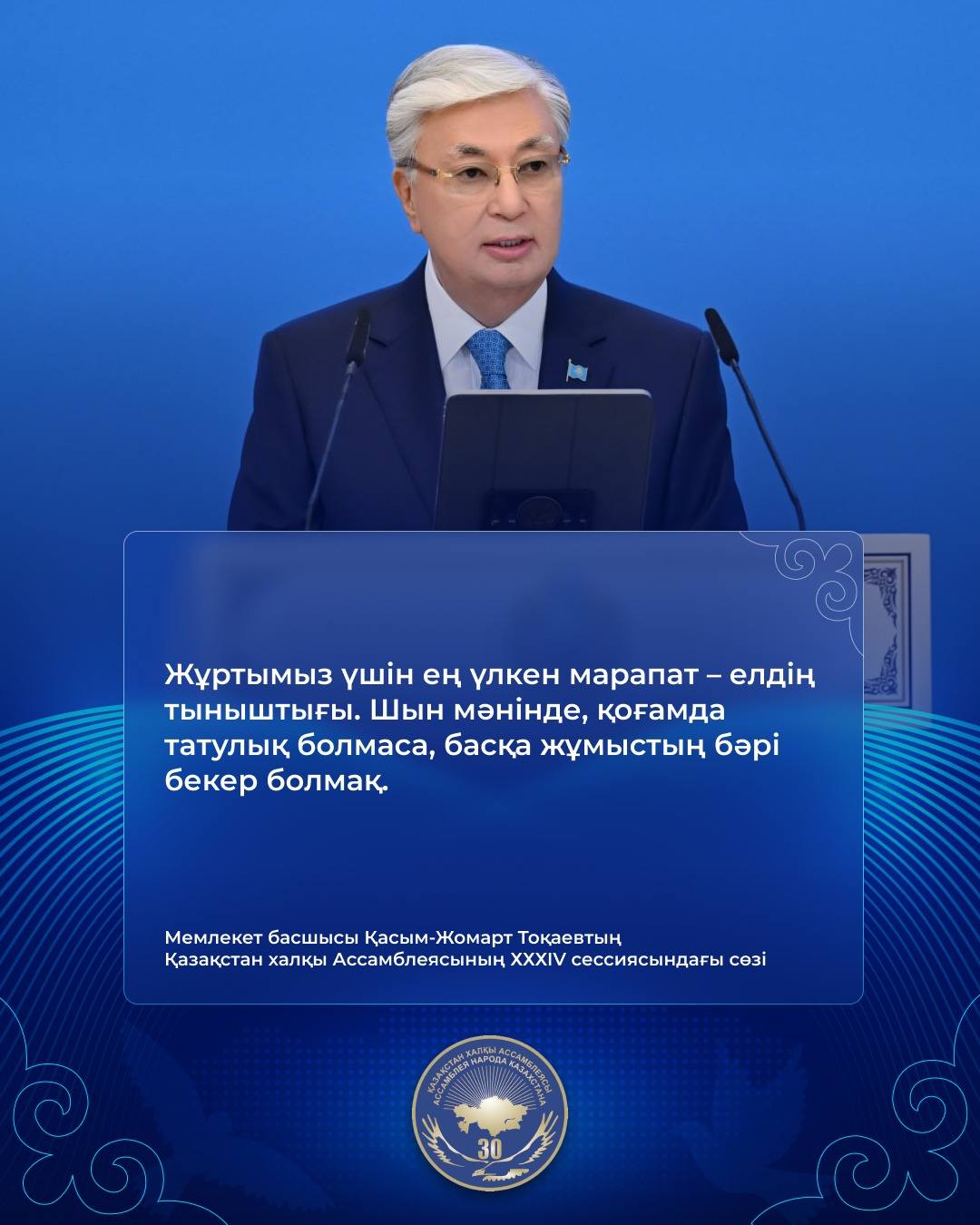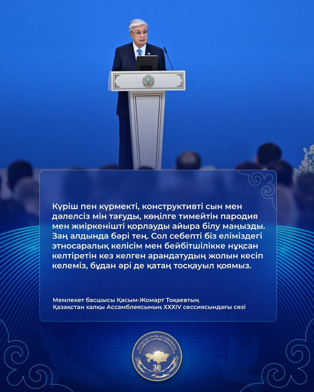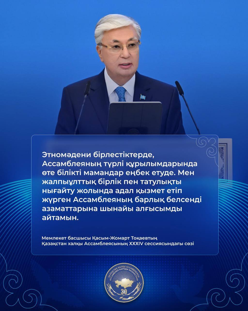 Мемлекет басышысы Қасымжомарт Тоқаевтың Қазақстан Халқы Ассамблеясының ХХХІV сессиясындағы сөзі.