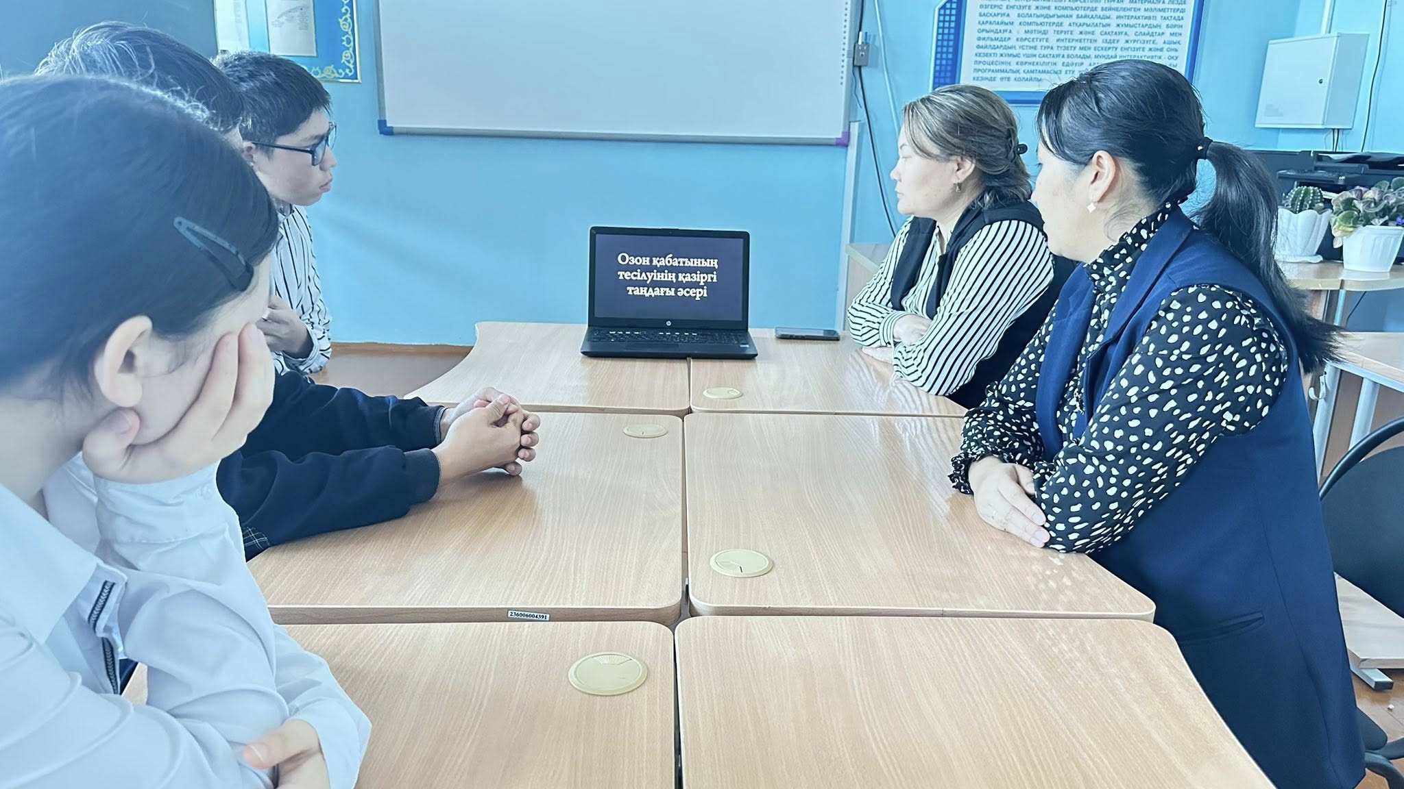 “Озон қабатын қорғау күні” тақырыбында дөңгелек үстел өткізіп оқушылармен әңгіме жүргізді.