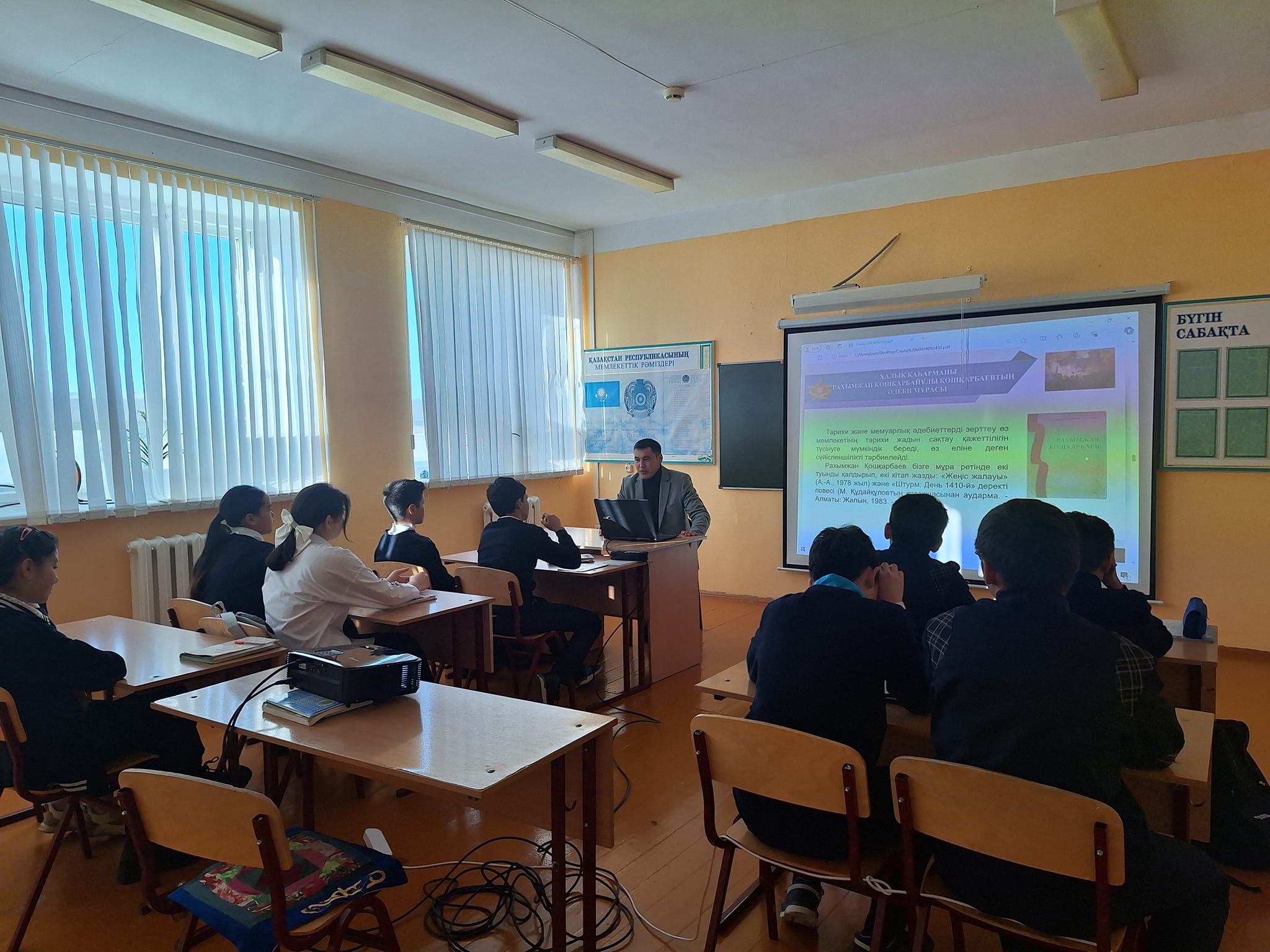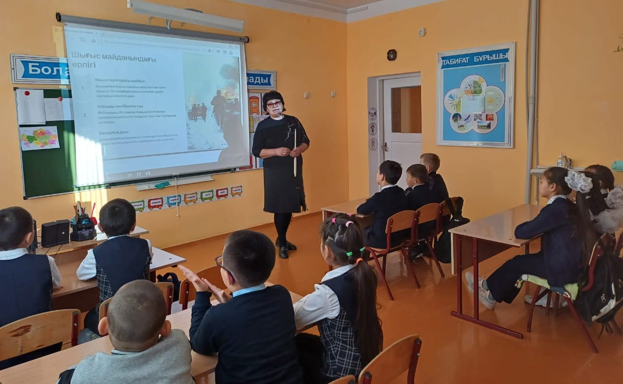 "Рахымжан Қошқарбаев. Рейхстаг үстіндегі ту" тақырыбында 1-9 сынып оқушыларына тәрбие сағаты өтті.
