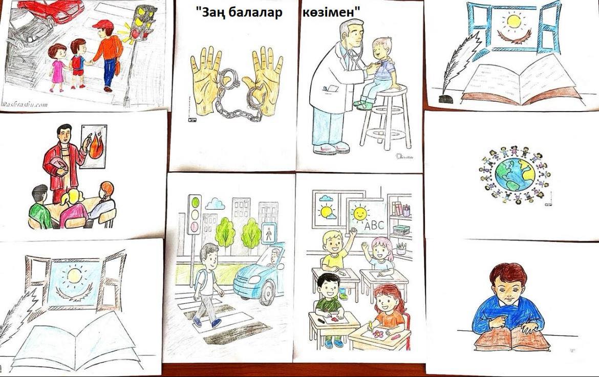 «Заң және тәртіп» айлығы аясында мектебіміздің оқушылары «Заң балалар көзімен» тақырыбында суреттер байқауына қатысты.