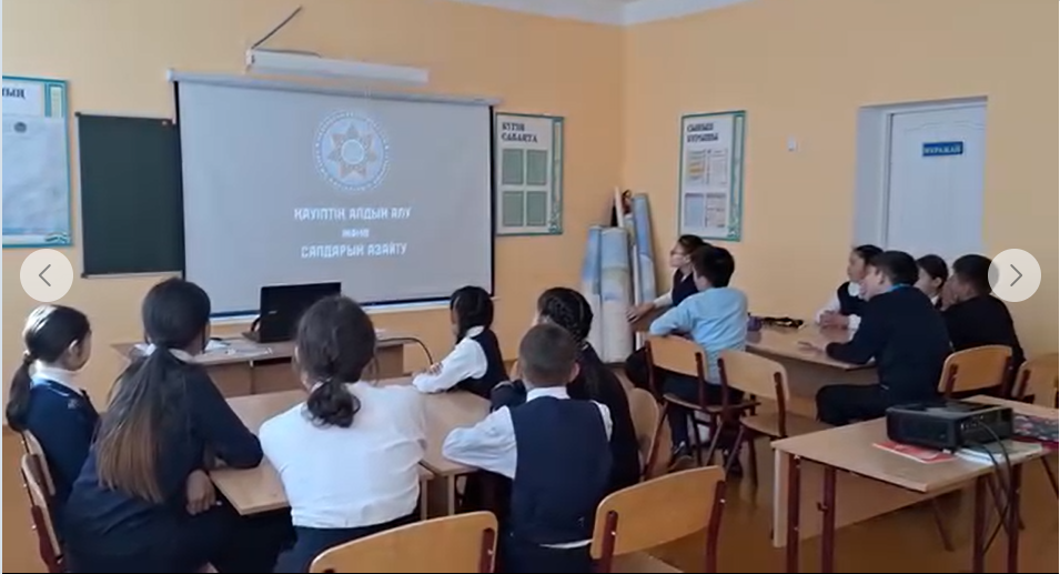 Мектебімізде 5-9 сыныптар арасында терроризмнің және діни экстремизмнің алдын алу мақсатында «Жалған терроризмнің алдын алу және терроризм қаупі төнген кездегі қауіпсіздік ережелері» атты кеңінен түсіндіру жұмыстары жүргізілді.