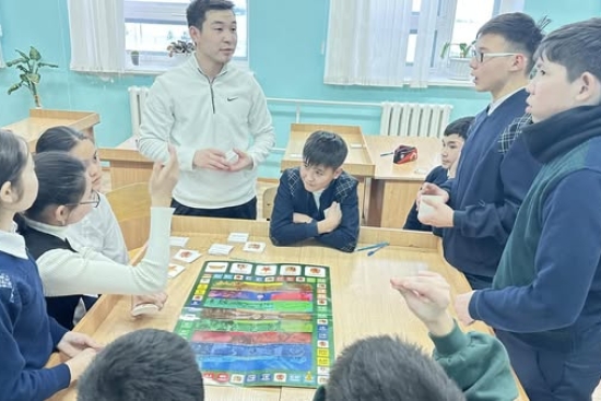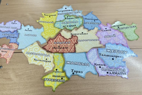География пәнінің мұғалімі Айгерим Нурхалиевна Қазақстанның картасын құрастыру бойынша пазл жинау жұмыстарын өткізді.