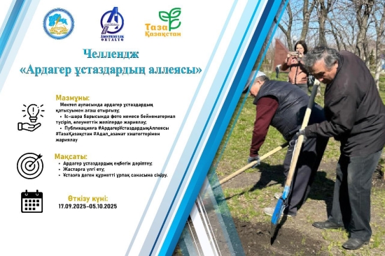 «Таза Қазақстан» акциясына орай ұстаздар күніне арналған «Ардагер ұстаздардың аллеясы» атты челленджге мектебіміздің ардагер ұстазы Саттыбаева Күлмаш Сейітқалиқызы мен мектеп оқушылары қатысты.